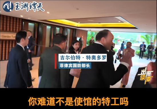 ▲菲律賓防長特奧多羅被問到南海問題時,反質疑央視記者是特工。玉淵潭天