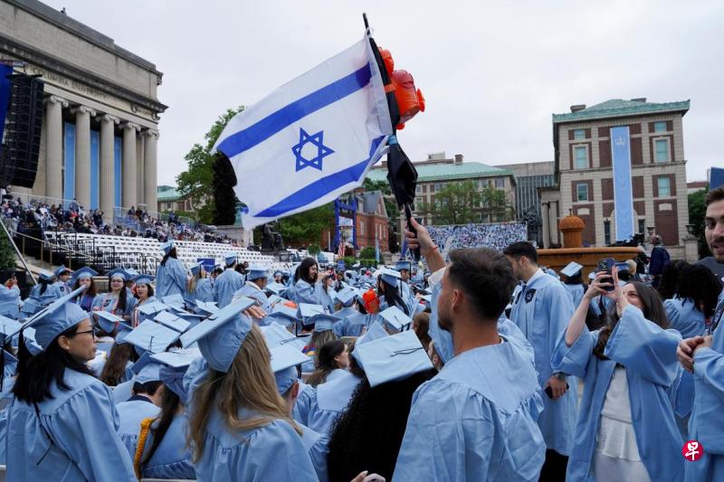 今年5月21日,美國紐約市曼哈頓哥倫比亞大學主校區畢業典禮上,一名學生手持以色列國旗。路透社.jpg