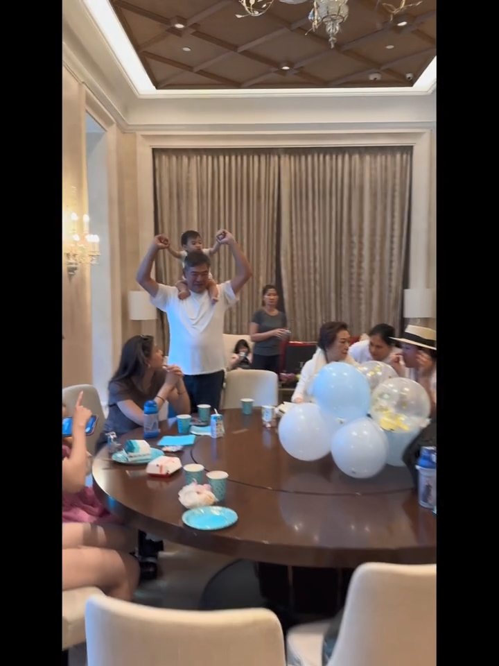 李美慧今年如常在豪宅為寶貝仔James在舉行2歲生日派對,她貼上一家四口的相片并說:“生日快樂,小寶貝James,多謝你的到來,為我們的生活增添風趣,祝你健康平安,快樂成長!”除了陳爽外,連“五索”鍾睿心(Rachel)都有留言。 李美慧夫婦各自抱著子女在蛋糕前合照,接著再看到一家人齊齊切蛋糕的相片,感覺相當溫馨幸福。 其實去年李美慧亦在豪宅為寶貝仔舉行生日派對,當時富爸爸曾文豪與囝囝玩“騎膊馬”滿場飛,生日派對安排在巨型飯廳內進行,飯廳的裝修相當奢華,樓底十分高,天花掛有巨型水晶燈兼長型大飯枱,旁邊有落地大玻璃,采光度十足,花園還設有大泳池,環境舒適,再加上私隱度極高,一家人不會受到騷擾,可以全心全意地共聚。