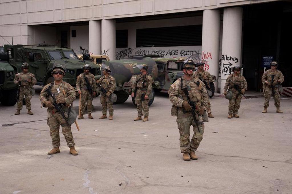 據美聯社的報道,加州國民兵的成員被安排部署在位于洛杉磯市中心的聯邦政府綜合大樓之中。在過去的兩天里,洛杉磯市區多處地點都發生了數百人參與的對抗事件??棺h地點之一的都會拘留中心就位在這座建筑群的范圍之內。