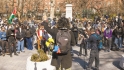 舊金山抗議活動發生在美國移民與海關執法局辦公室周遭。1名抗議者透過擴音器高喊:“當移民受到攻擊時,我們該怎么做?”群眾便齊聲回應,“站出來,反抗!”