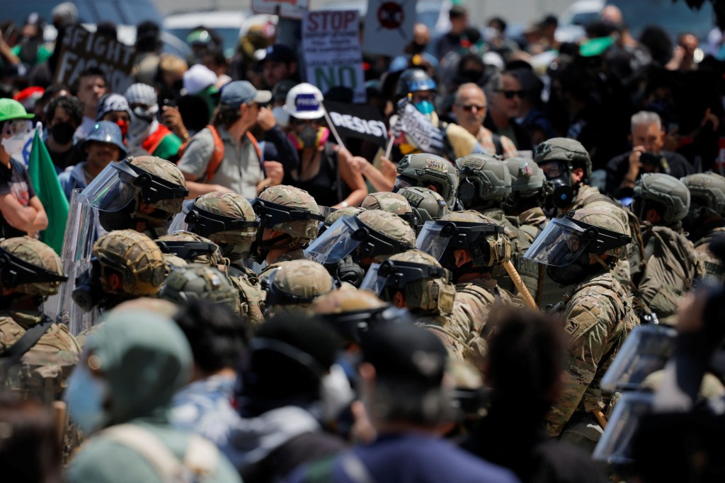 美國移民與海關執法局等聯邦機構6日和7日出動大批執法人員,在洛杉磯縣多地展開針對非法移民的搜捕行動,連續兩日與當地社區居民發生嚴重沖突。 7日,美國總統川普簽署總統備忘錄,在加州州長紐森沒有請求支援的情況下,宣布向洛杉磯地區派駐2,000名國民警衛隊人員。美國軍方8日說,當天共有300名國民警衛隊人員依指令進駐洛杉磯地區。