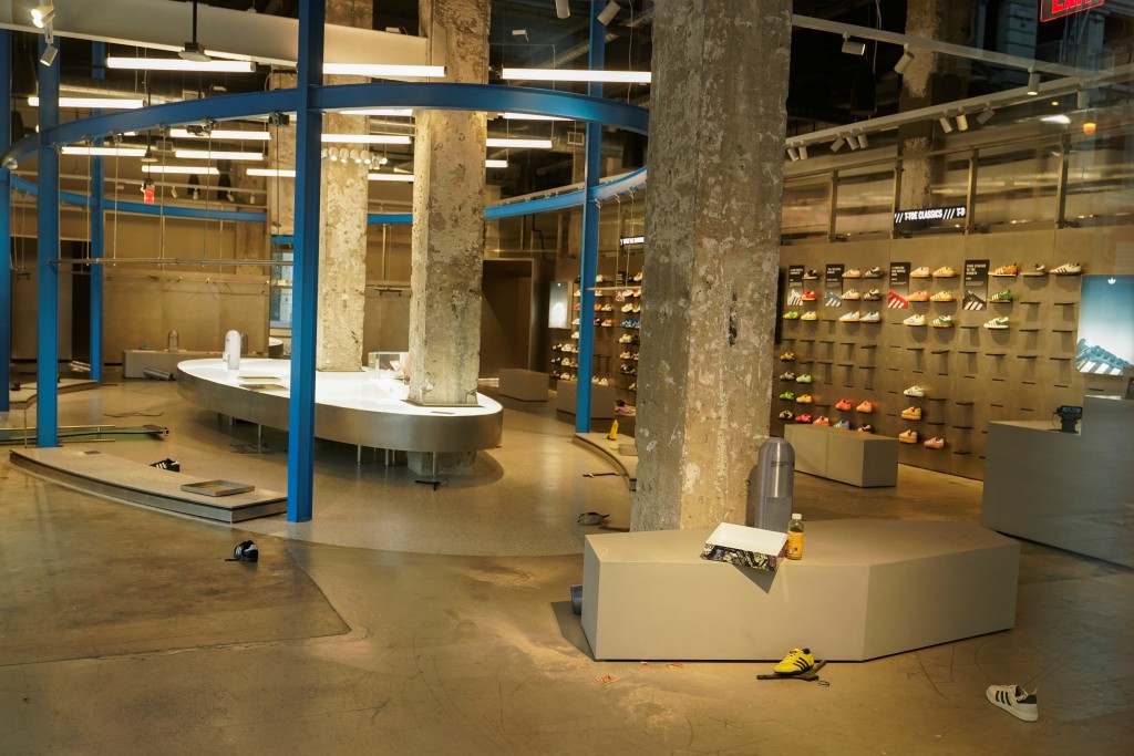 Apple Store專門店櫥窗遭人砸碎及涂鴉,店內有貨品被盜。另外,運動品牌Adidas 、藥房、大麻店等也同遭破壞,珠寶店亦被清空貨架。