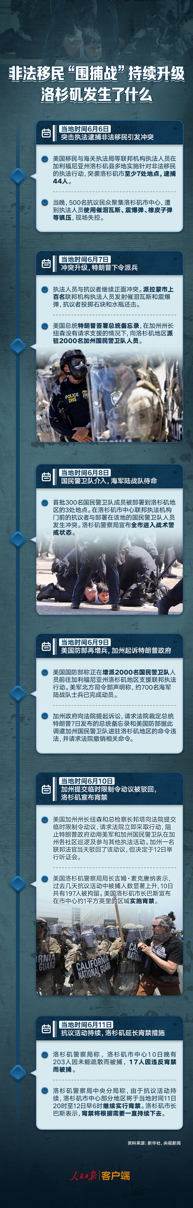 2000名國民警衛隊員派駐、海軍陸戰隊出動、洛杉磯市中心部分地區宵禁……美國聯邦執法機構連日來在洛杉磯地區多個地點搜尋非法移民,與當地民眾發生一連串沖突。加州政府與聯邦政府之間的斗爭愈演愈烈,洛杉磯“亂成一鍋粥”。