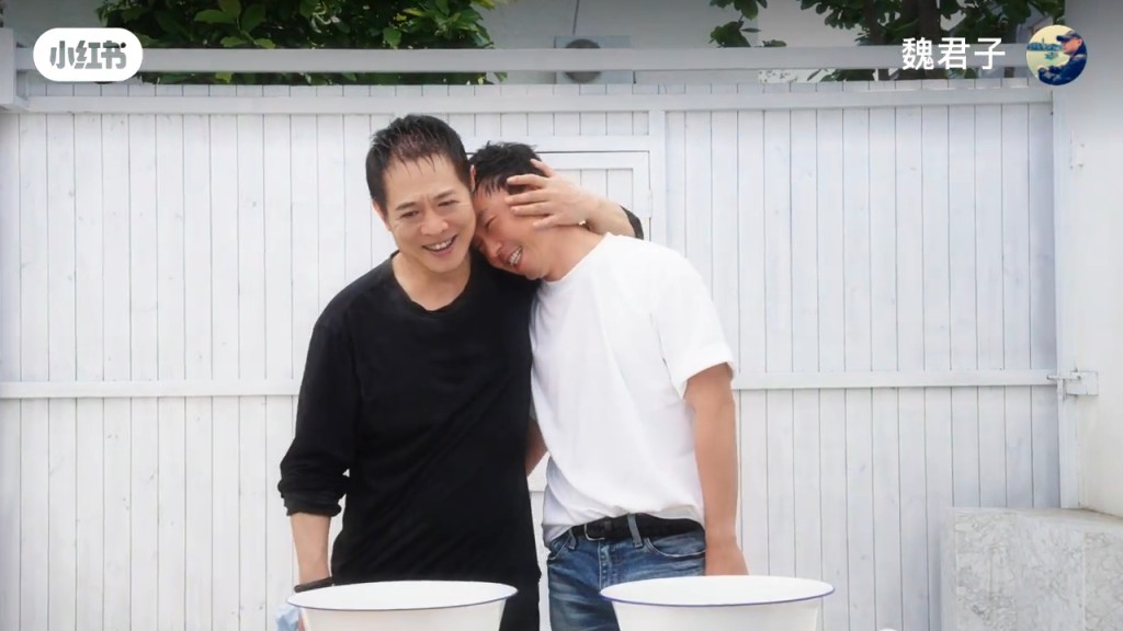 李連杰于個人社交平臺放出新短片,片中就見到《給爸爸的信》中,兩父子一起刷牙的片后,隨后父子倆俯身將頭放入注滿水的盆中洗面,萬料不到一起身,竟是“成長”后和“變老”后的謝苗和李連杰。李連杰于片中狀態極佳,雖然頭發浸濕了,頭發仍然濃密,面上亦沒有明顯皺紋,演起戲時聲如洪鐘動作敏捷。而長大后的謝苗已經成了41歲的“大叔”,若不細心觀察,相信難以發現他就是30年前的當紅童星?,F時謝苗蓄有須根“叔味”極濃,但于片中和李連杰雙雙展露些微武功身手,仍然是極有睇頭。