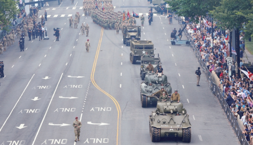 今次閱兵有約數千名士兵列隊行進,多架軍用直升機飛越天空,還有陸軍傘兵從軍機跳傘著陸。這是自1991年第一次波斯灣戰爭結束以來,在美國首都舉行最大規模的閱兵儀式,約有150輛軍用車輛、6600名士兵,以及數十架軍機在閱兵儀式登場,呈現美國陸軍發展史的各個重要時期。