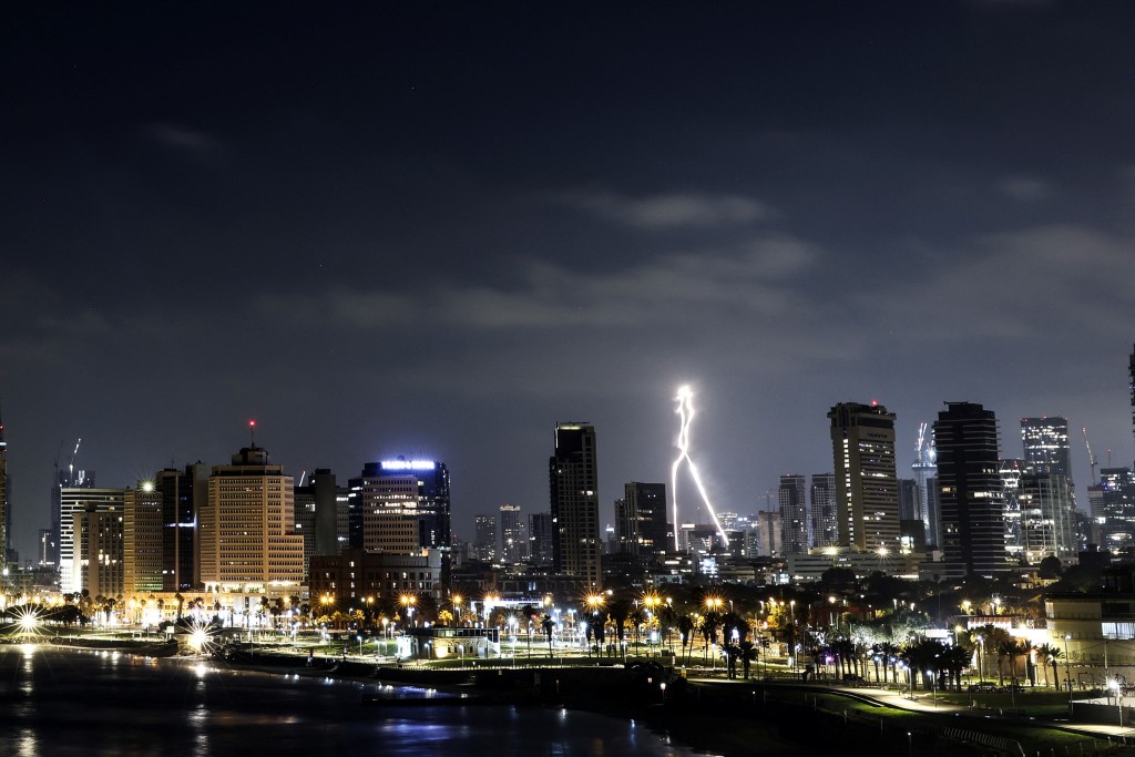 以色列防空系統攔截射往特拉維夫的伊朗導彈。