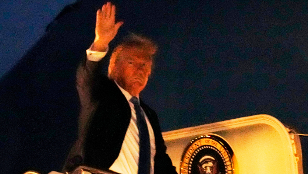 ▲美國總統特朗普16日在卡爾加里國際機場(Calgary International Airport)搭機返美。(美聯社)