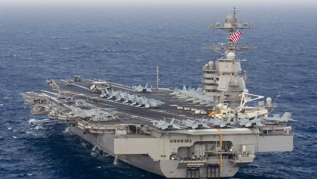 ▲ 美軍福特號航母2020年6月4日穿越大西洋的畫面。(美國海軍)
