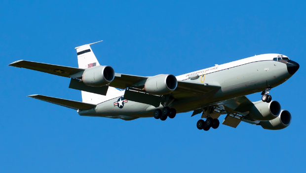 WC-135R可以在高空采樣大氣的放射性顆粒、氣體流出及碎片,藉此搜集敵方核武發展或試爆情資。(美聯社)