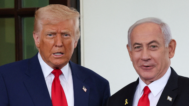 ▲美國總統特朗普于2025年4月7日,在華盛頓特區白宮門口迎接以色列總理尼坦雅胡。