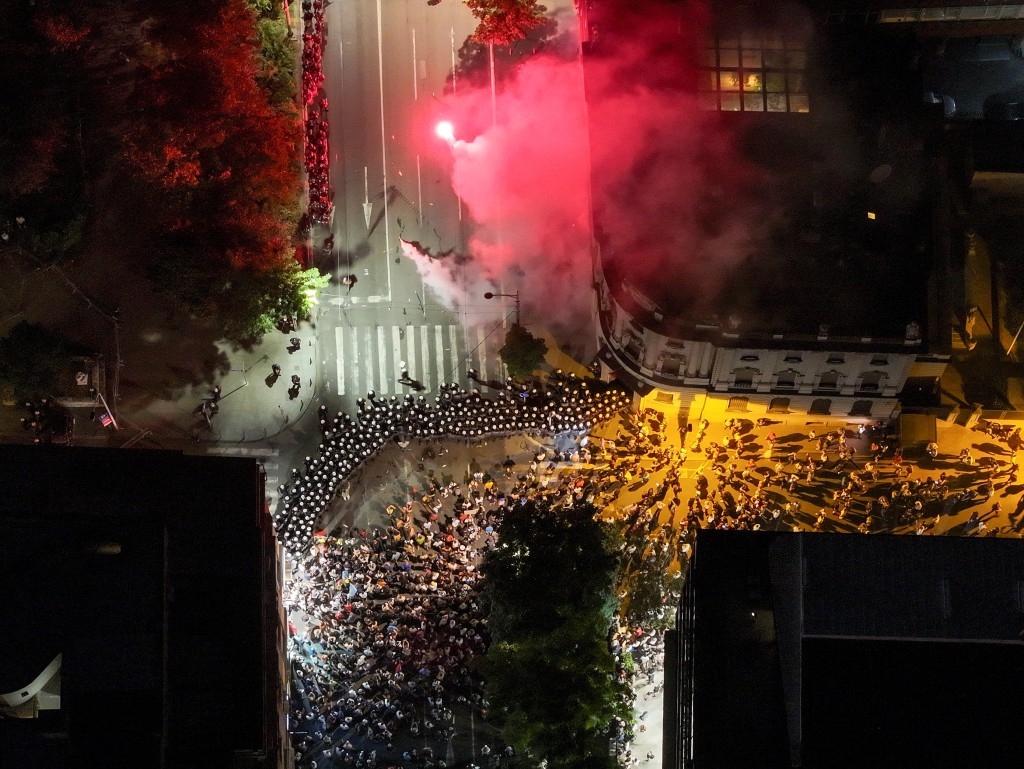 抗議活動在當地時間約晚上10時結束后,一些想要與武契奇支持者對峙的示威者向警方投擲瓶子、石塊和信號彈,警方則在貝爾格萊德市中心多個地點使用武力驅散示威者。