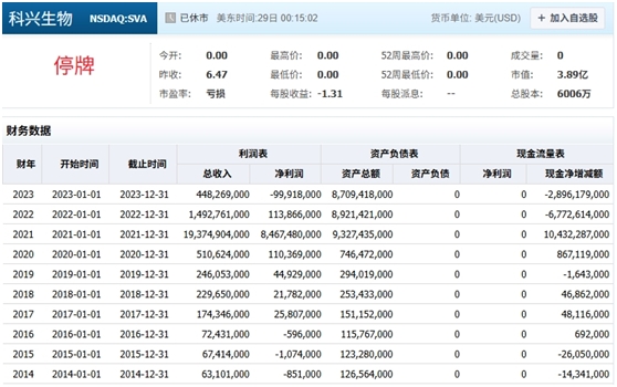 2019年2月,科興生物因內部治理糾紛主動申請停牌,股價便定格在6.47美元,錯過2020-2022年新冠疫苗紅利期。不過在新冠疫情散去之后,科興生物陷入虧損,2023年凈利潤為-9991.8萬美元,2024年上半年凈利潤為-789.7萬美元。
