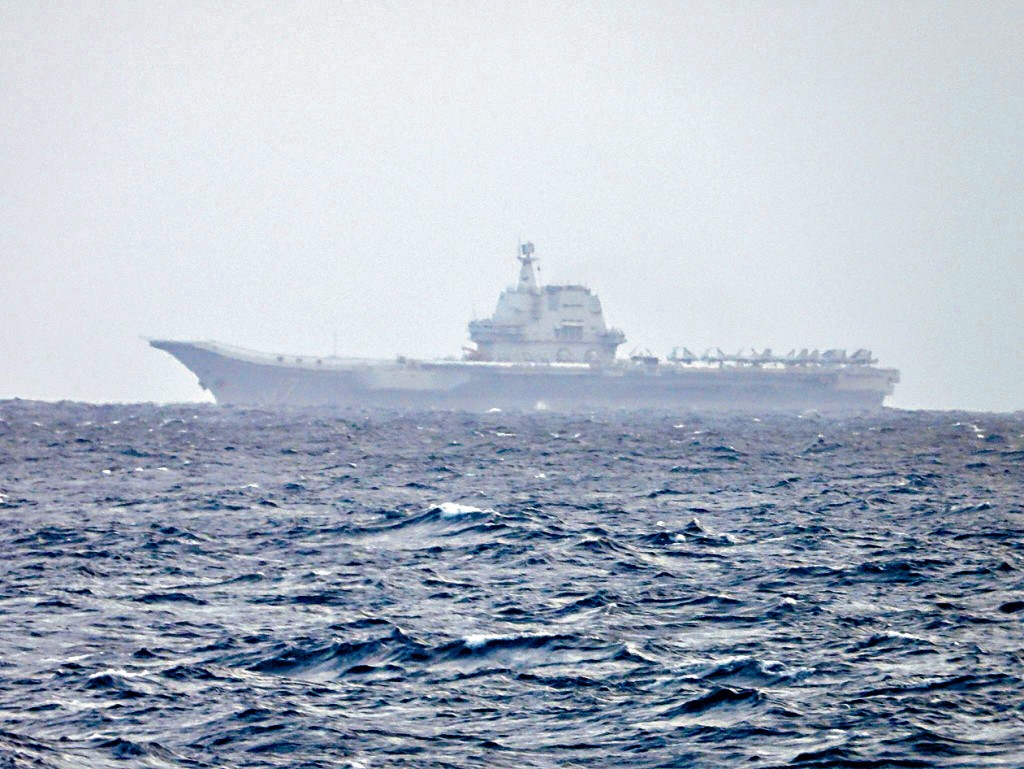 ▲臺軍發放大陸航母“山東艦”在臺島附近的照片。