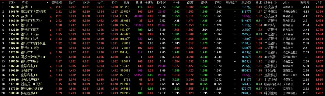 其他熱門板塊方面,港股科技相關ETF、游戲相關ETF、港股非銀ETF的漲幅也同樣居前。