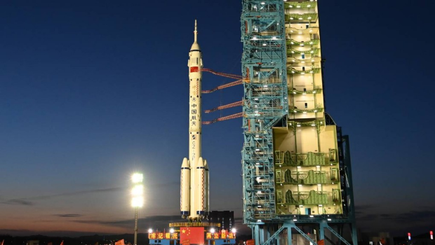▲4月16日,據中國載人航天工程辦公室消息,神舟二十號載人飛船與長征二號F遙二十運載火箭組合體已轉運至發射區。中新社