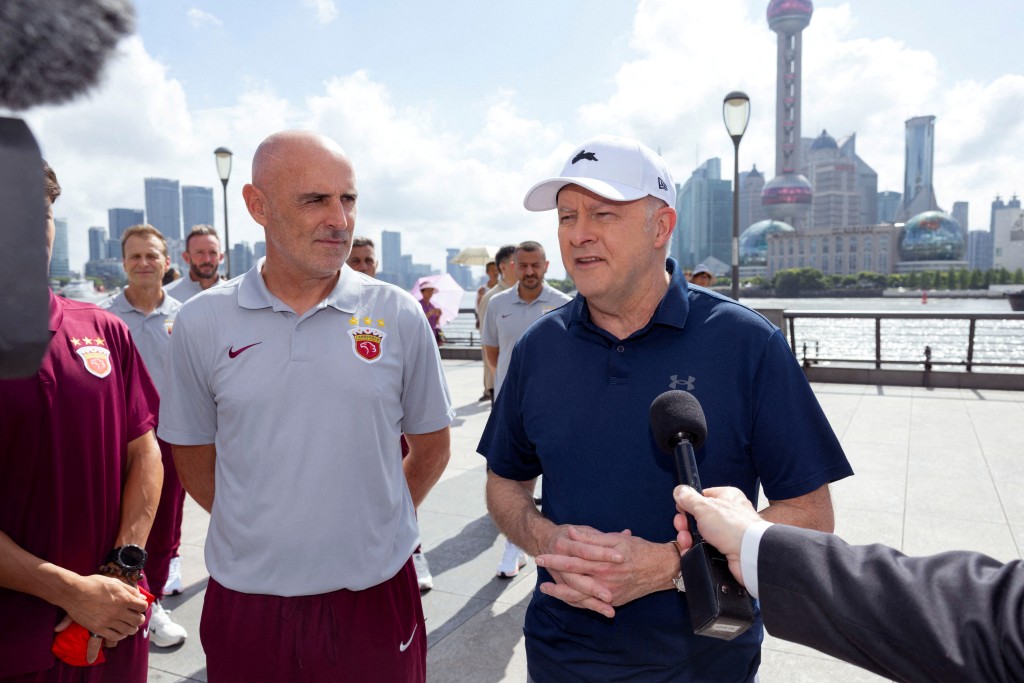 ▲澳洲總理阿爾巴尼斯(右)在外灘接受媒體采訪。路透社