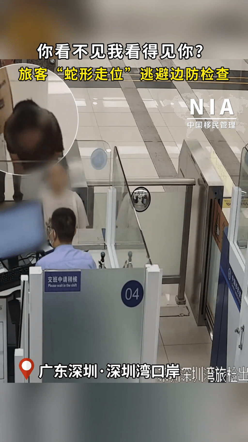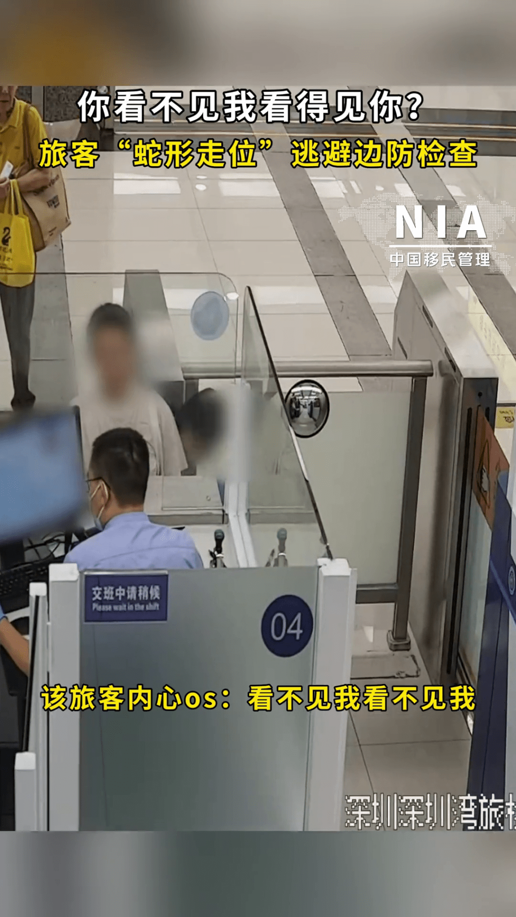 女子彎腰低頭“蛇形走位”,企圖逃避邊防檢查。