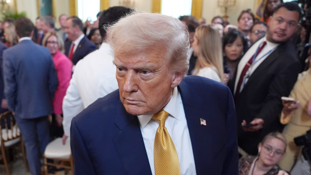 ▲2025年7月16日(星期三),美國總統特朗普在白宮東廳簽署法案后離開現場。(圖/美聯社)