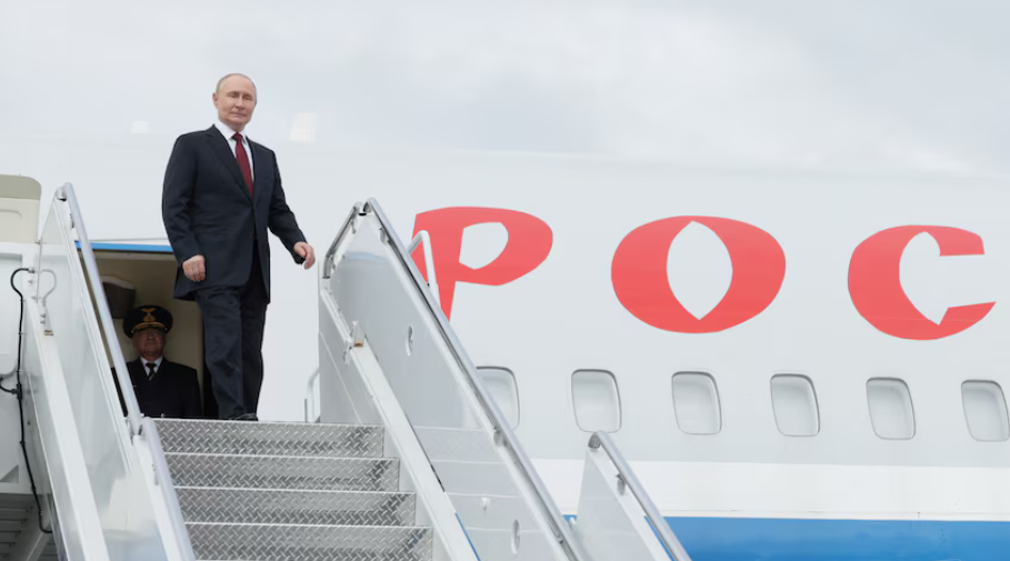 ▲當地時間15日,俄羅斯總統普京乘專機抵達阿拉斯加安克雷奇市埃爾門多夫-理查森聯合軍事基地。圖源:英媒