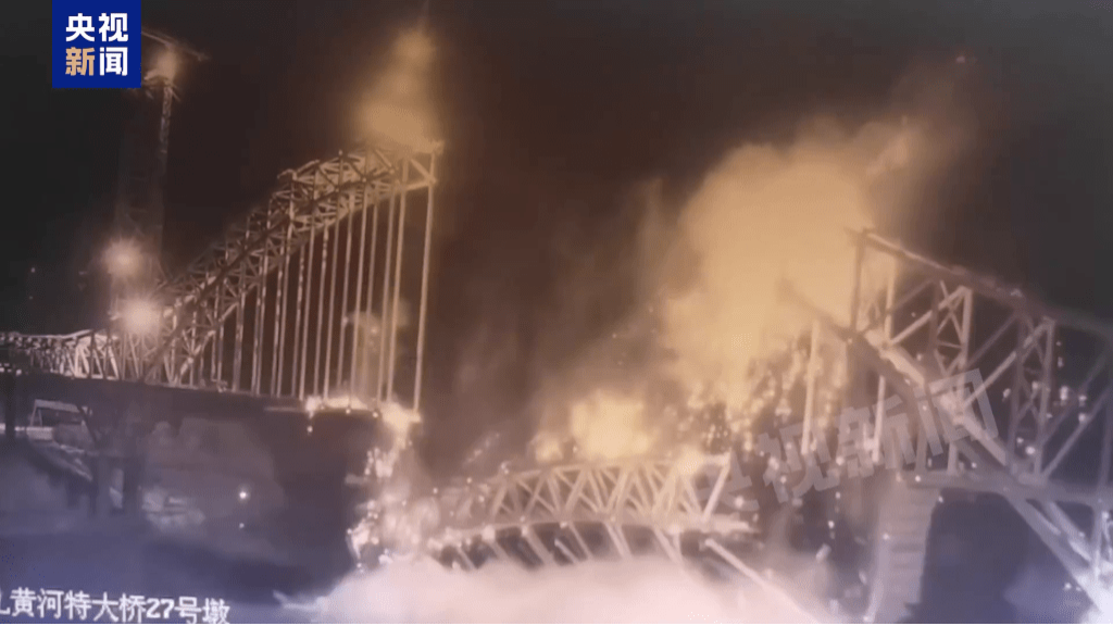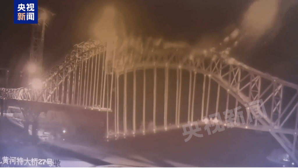 央視新聞曝光尖扎黃河特大橋事故發生一刻的畫面。
