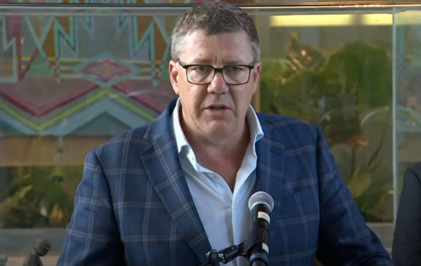 ▲當地時間21日,斯科特·莫伊在新聞發布會上發表講話。圖為外媒發布的視頻截圖