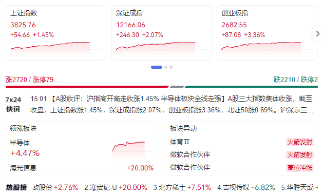 板塊方面,半導體芯片持續強勢,成都華微、海光信息、盛美上海20cm漲停;算力硬件持續活躍,方正科技、旭光電子、航錦科技(維權)漲停;證券板塊午后走強,光大證券、信達證券漲停;下跌方面,醫藥板塊弱勢震蕩,毛發醫療方向領跌,水羊股份、華邦健康跌幅居前;大消費板塊陷入調整,廚衛電器、養殖業等方向跌幅居前,浙江美大領跌;油服板塊調整,潛能恒信領跌??傮w來看,個股漲跌互現,上漲個股超2600只。