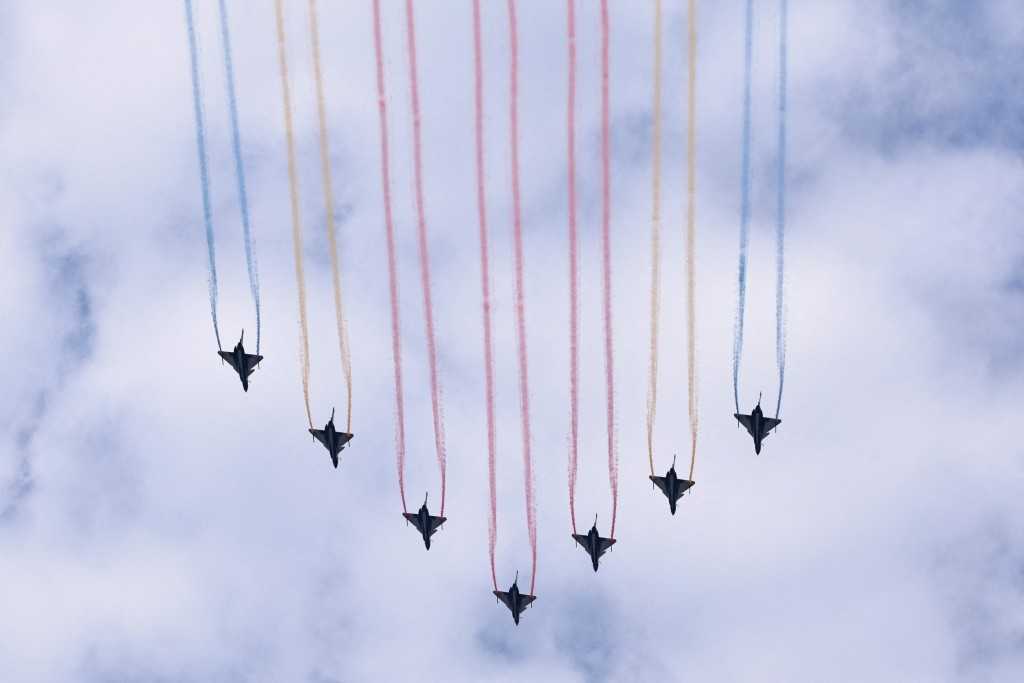 ▲直升機拼出“80”字樣。路透社