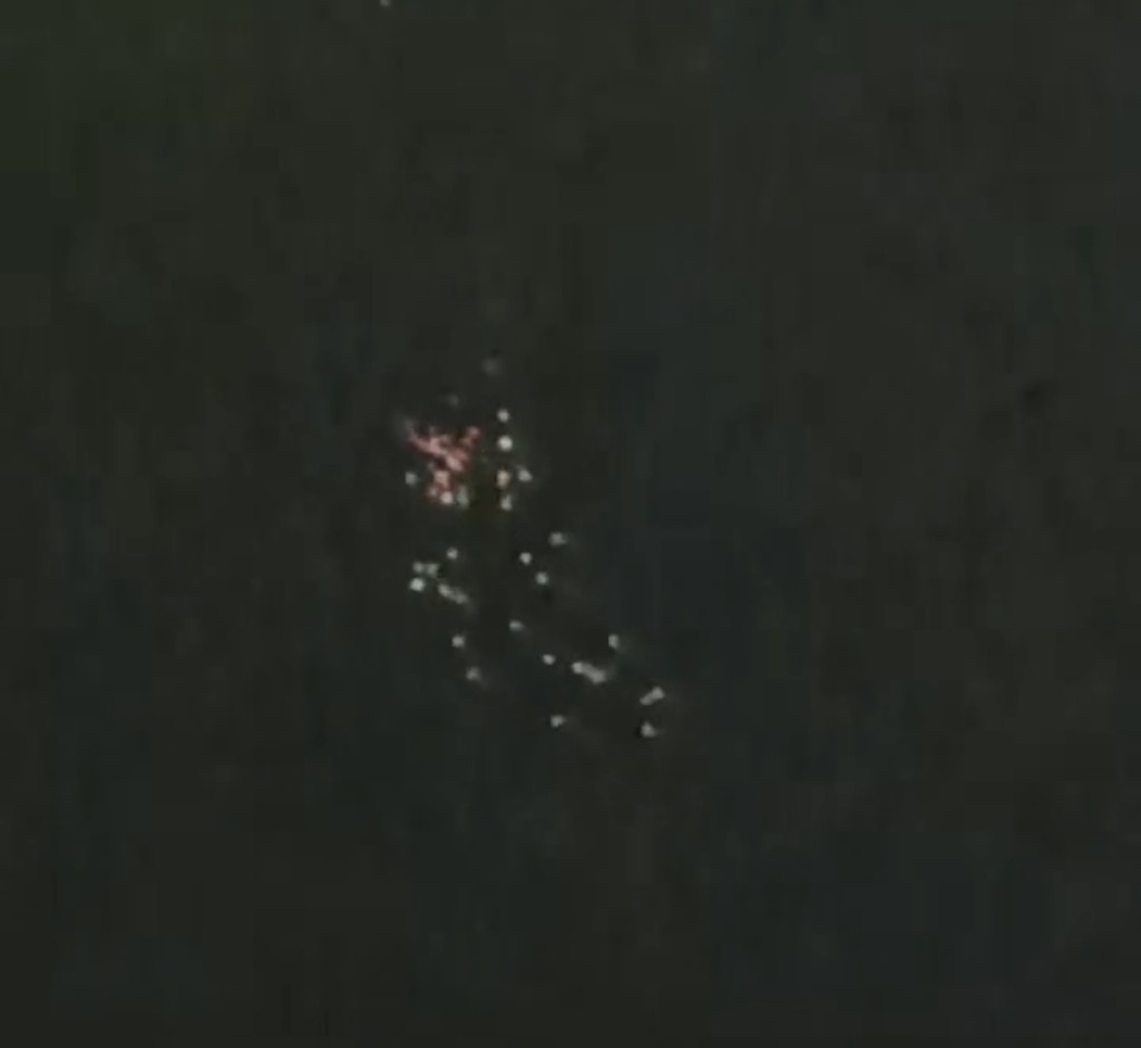 有網友發布影片顯示,一處建筑物的上空出現了眾多不明飛行物,飛行物多數發紅色和綠光,亮點較為密集,整體呈長條狀懸停在夜空中,但光源點沒有閃爍,整個過程持續約20分鐘。