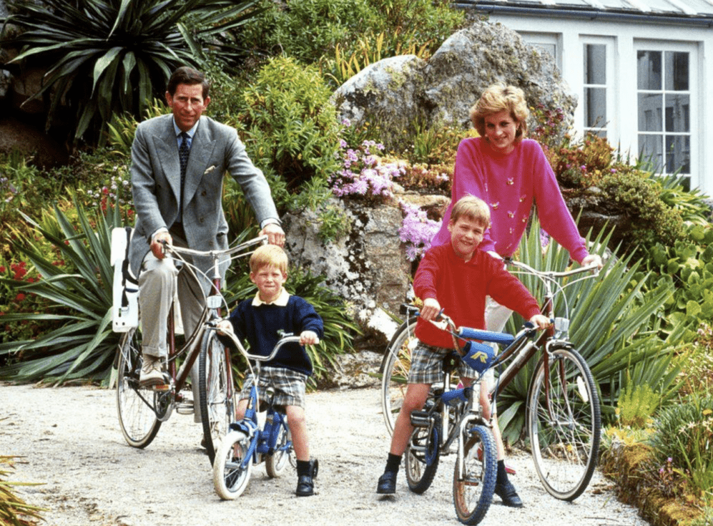 戴妃與丈夫查理斯王子、兩名兒子威廉和哈理