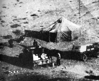 彭加木拍攝的考察隊在庫木庫都克的帳篷及卡車。