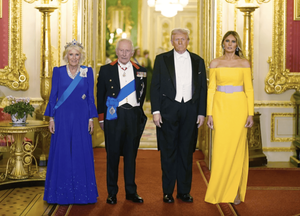 美國總統特朗普周三(17日)展開破天荒第二次英國國事訪問,在溫莎堡享受王室排場,包括馬車巡游、儀仗檢閱、王室晚宴及空軍表演。他形容與英王查爾斯三世共度的榮耀時刻是“人生最崇高的榮譽之一”。不過,“第一夫人”梅拉尼婭在國宴所穿的露肩黃裙,卻在社交媒體掀起討論,有人直指其造型“太隨便”,與王室場合格格不入。
