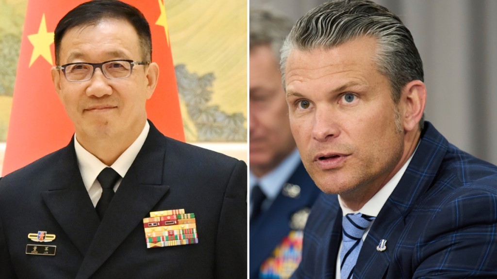 ▲國防部長董軍9日晚應約同美國國防部長赫格塞思視頻通話。 中新社/美聯社