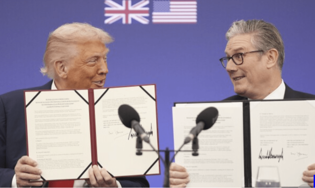 特朗普與英國首相斯塔默一起出席記者會,他笑稱與斯塔默“真心互相喜歡”,并盛贊英國今次的款待“非言語所能形容”,又稱該份《科技繁榮協議》(Tech Prosperity Deal)能鞏固英美于科技領域的領導地位。
