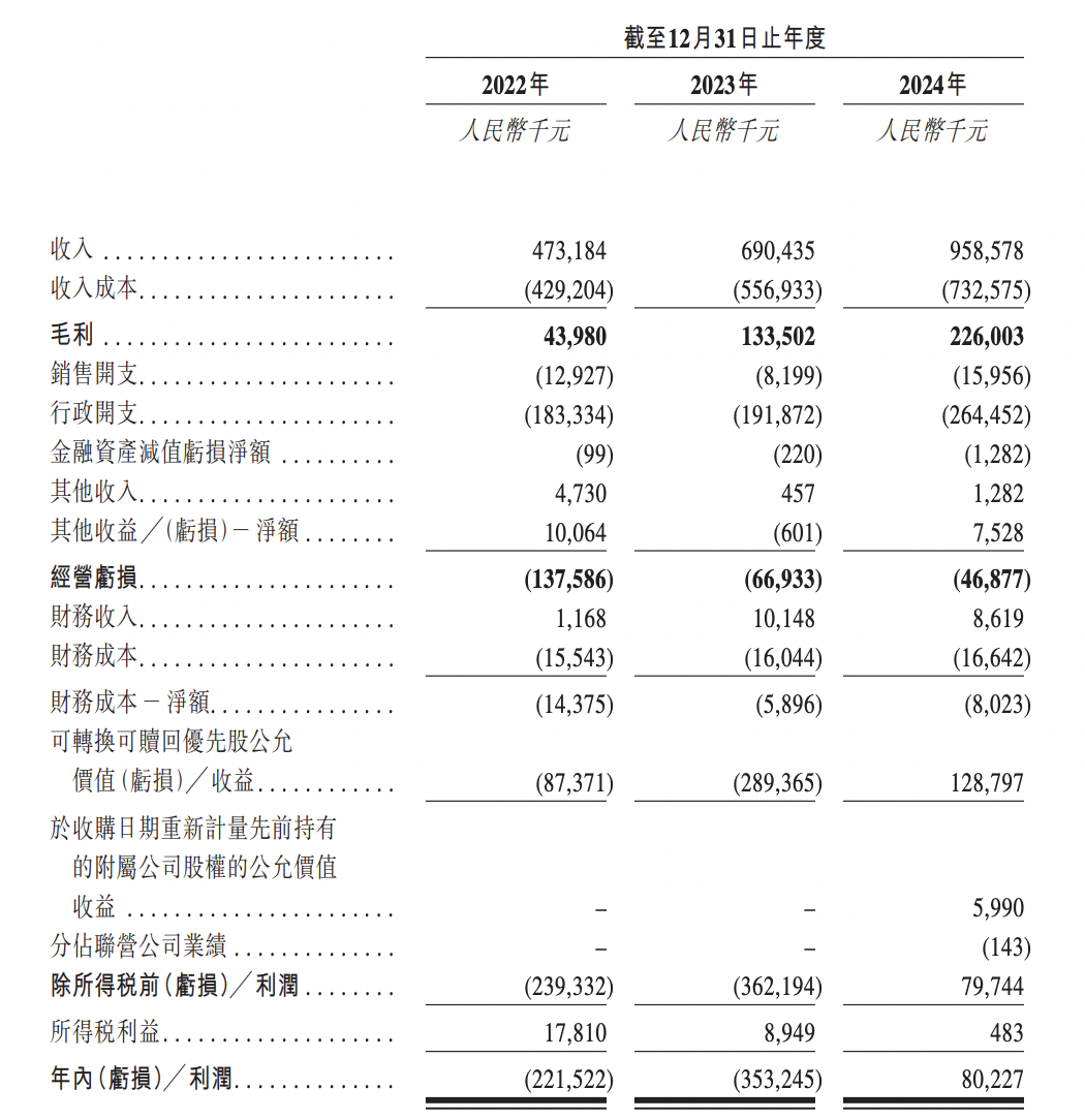 業績方面,2022年只2024年,卓正醫療收入分別為4.73億元、6.90億元和9.59億元,年內利潤分別為-2.22億元、-3.53億元和0.80億元,毛利率分別為9.3%、19.3%和23.6%。2024年,卓正醫療首度實現盈利。