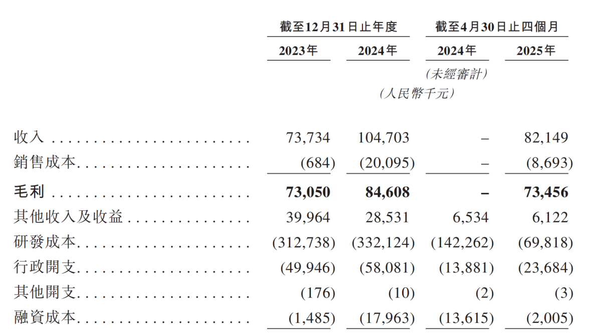 數據顯示,2023-2025年1-4月,勁方醫藥的研發成本分別為3.13億元、3.32億元、0.7億元,占同期營收的比重分別為86.2%、85.1%、74.7%。