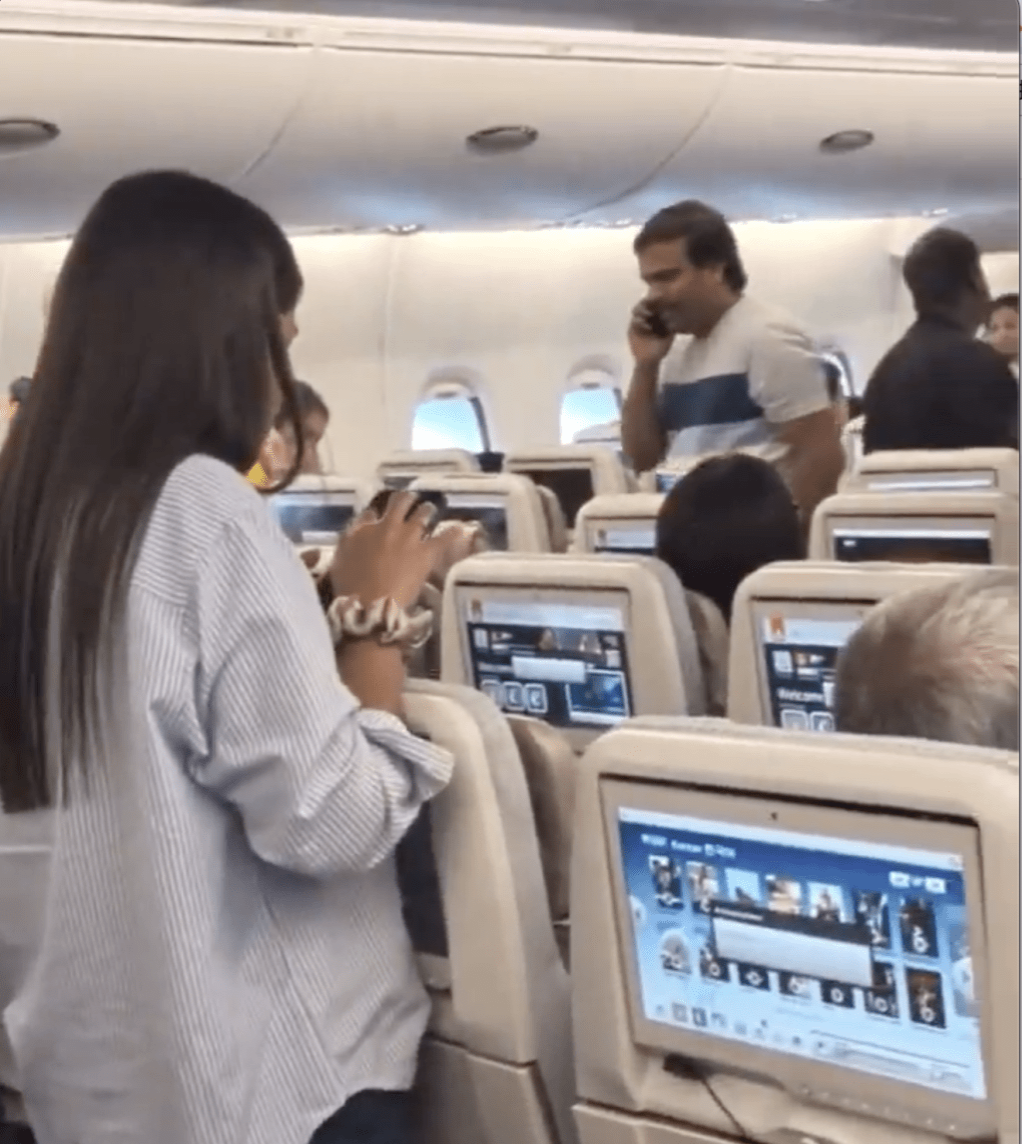 ▲舊金山國際機場一班準備飛往印度的阿聯酋航空客機上,有乘客要求落機。X @URScrewed 片段截圖