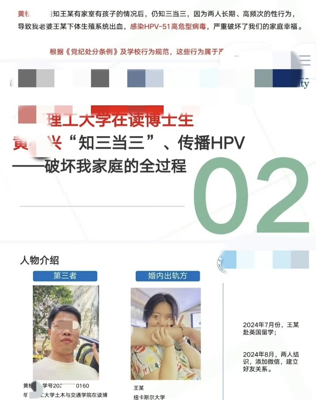 • 華南理工博士生被曝出軌人妻,丈夫制68頁PPT公開二人露骨對話