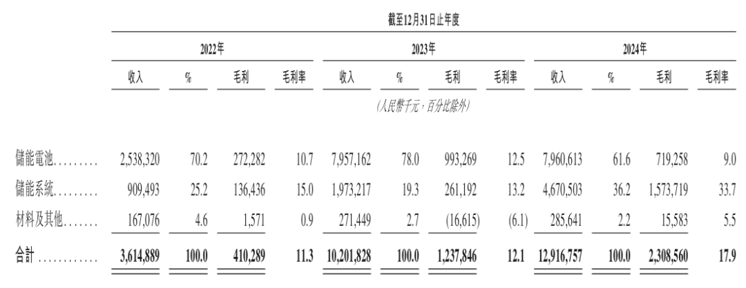 好在海辰儲能的儲能系統業務毛利在2024年實現了502.5%的顯著增長,來到15.37億元,毛利率也由13.2%翻倍提升至33.7%,這才提振了該公司的整體水平,使其毛利率同比增長5.8個百分點至17.9%。