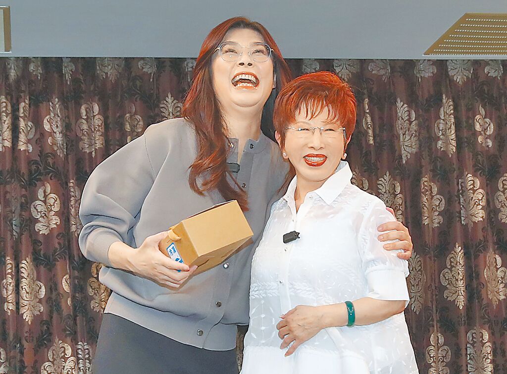 ▲國民黨主席候選人鄭麗文(左)16日拜會前主席洪秀柱(右),兩人歡喜擁抱。(黃世麒攝)