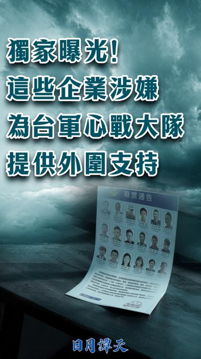 10月11日,福建省廈門市公安局發布依法征集臺軍心戰大隊18名核心骨干違法犯罪線索的懸賞通告。譚主第一時間發表解讀文章,獨家披露大陸方面已掌握心戰大隊全部250余名成員真實身份和崗位職責等多份重磅消息,多家臺灣媒體以此為題大篇幅跟進報道,引發島內強烈反響。