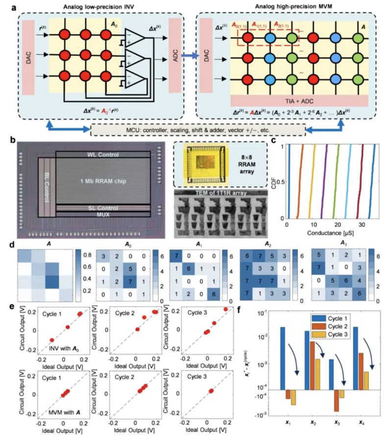近日,北京大學人工智能研究院孫仲研究員團隊聯合集成電路學院研究團隊,成功研制出基于阻變存儲器的高精度、可擴展模擬矩陣計算芯片,首次實現了在精度上可與數字計算媲美的模擬計算系統。