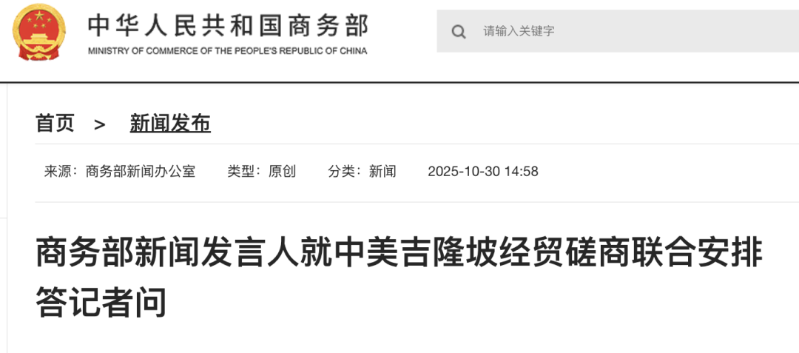 10月30日,商務部新聞發言人就中美吉隆坡經貿磋商聯合安排答記者問。
