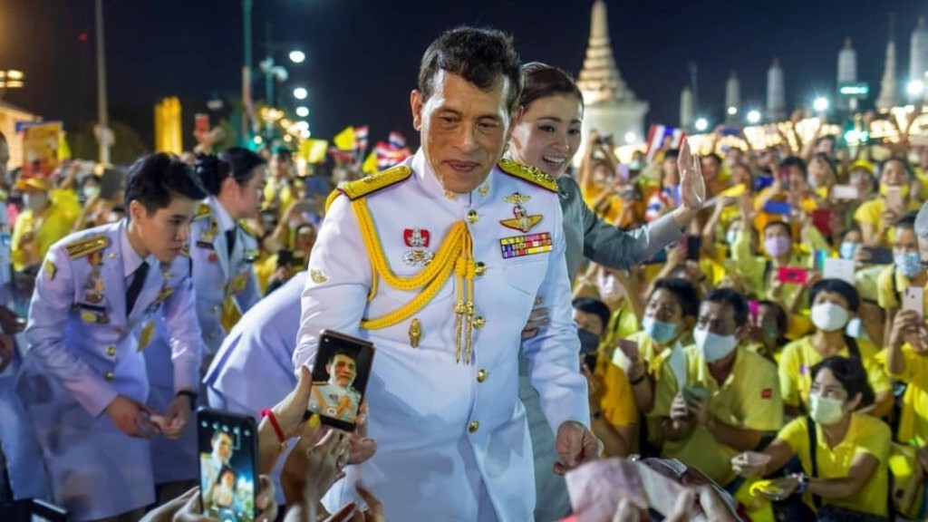 據參考消息援引泰媒報道,11月17日,泰國國王哇集拉隆功和王后素提達結束訪華,站在飛機艙門前向送別人群微笑揮手。